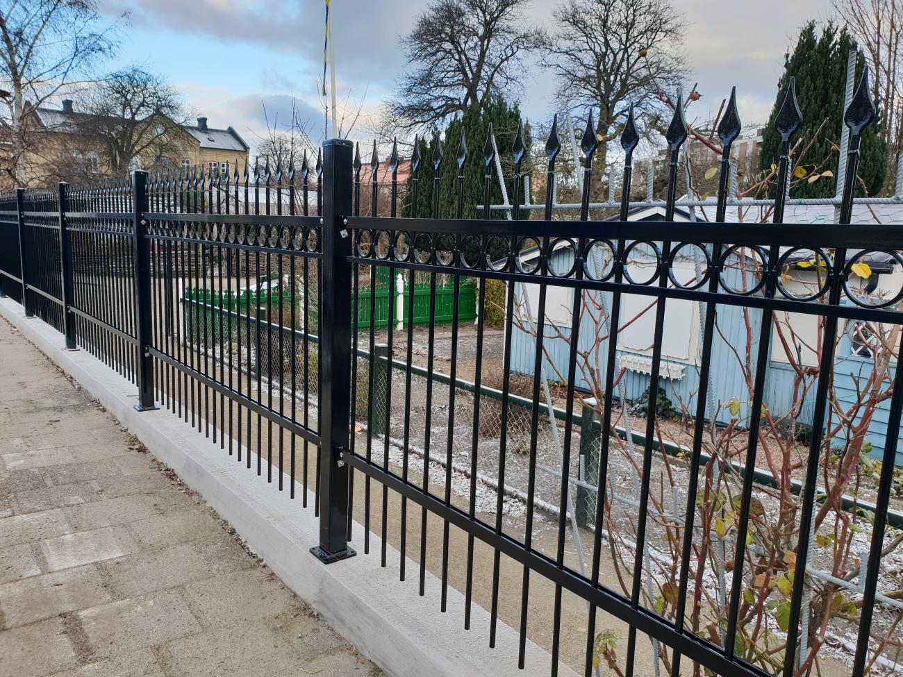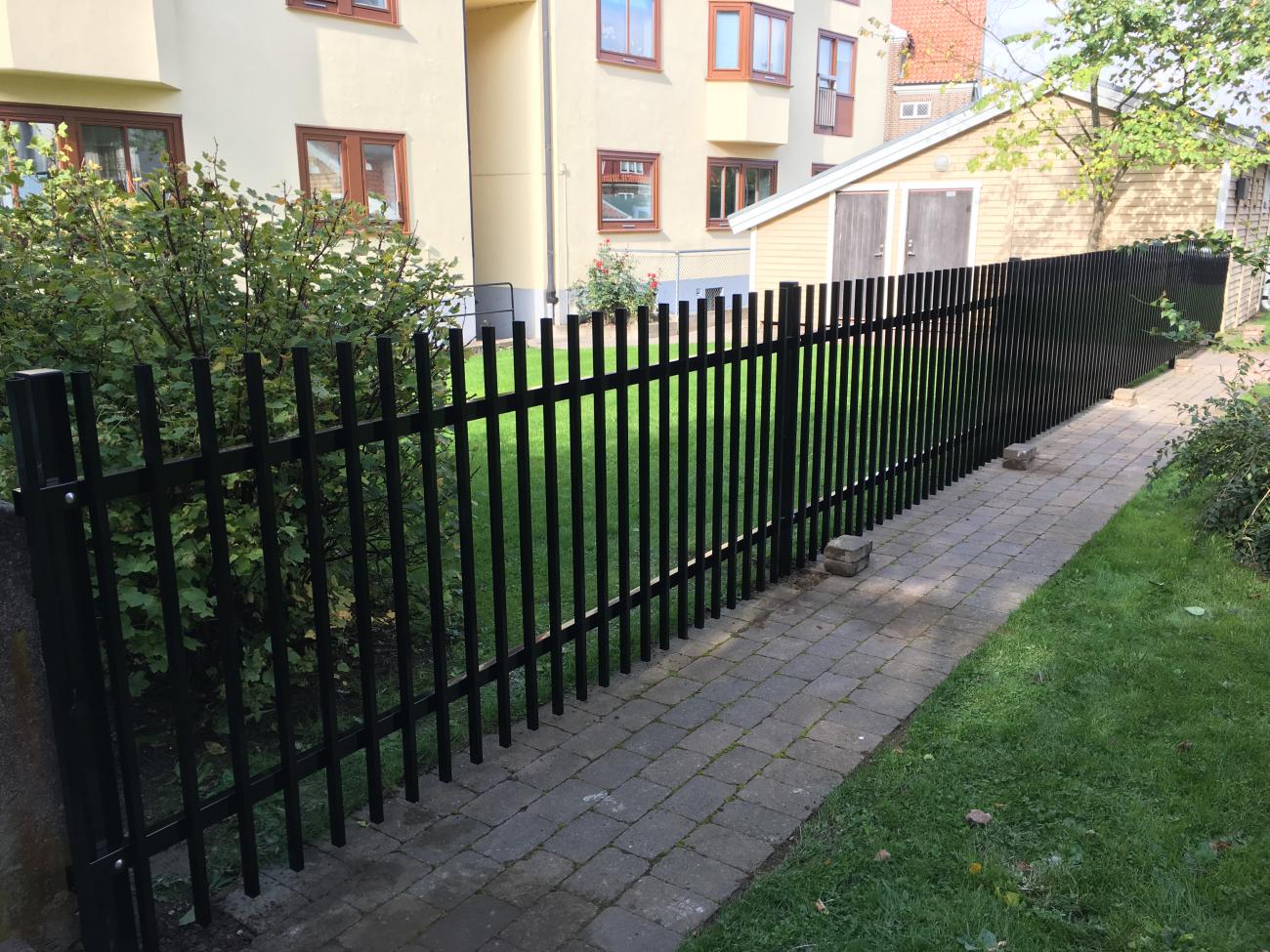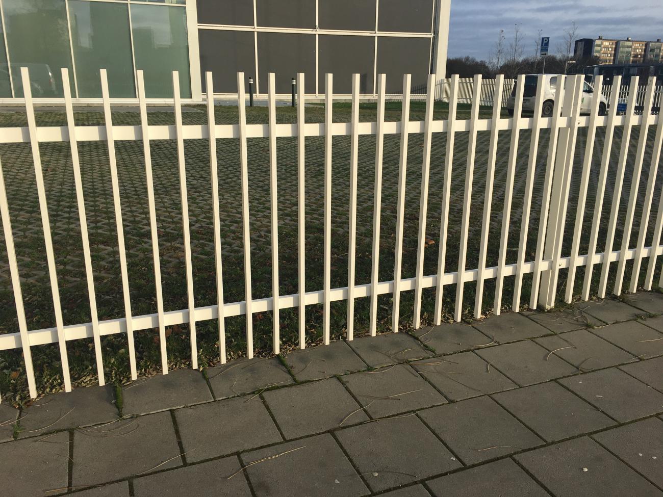 Palissader består av stående fyrkantsprofiler som är svetsade på två liggande fyrkantsprofiler.
