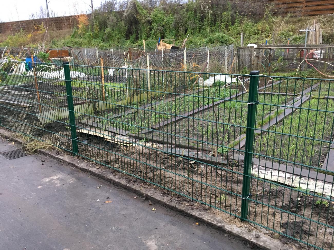 Sektionerna består av 20x20mm profiler i ramen och ett nät med maskor om 100x50mm och en 3mm tråd,